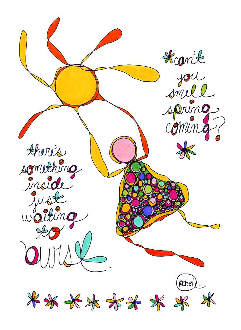 "something deep to learn: my favorite p.o. box exists in my heart. i love to hear what piles in. i try to give special attention to messages i hear more than once. here's a few of my own lately. i want to write secret love notes + leave them in library books. make up lullabies + sing them into a little recorder. i want to keep telling strangers they are beautiful. + there exists this deep thing. i get into trouble as soon as i stop paying attention. such messages come in on peacock colored wings + are meant to be lived. we all feel it. how scary it is to stretch. to bare teeth + bones into our world. to be here fully."